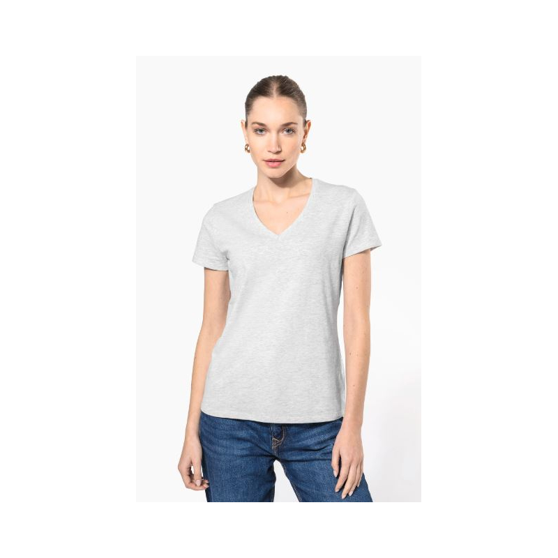 T-Shirt V-Ausschnitt Kurze Ärmel Für Frauen, in Baumwolle mit Enzymen gewaschen, die ihm einen weichen und seidigen Hauch von Pfirsichhaut verleiht. Erhältlich als Modell für Männer (K357).