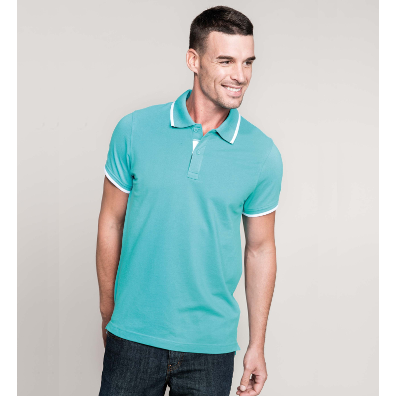 Ein bicolored Mann Polo mit einer kontrastierenden Unterseite des Kragens, sein einziges Ziel ist es zu klettern und zu Fuß ohne Komplex auf den Golfplätzen.