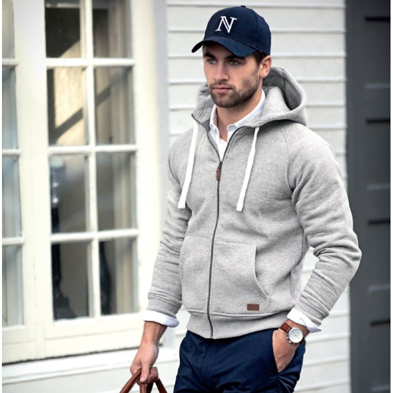 Hochwertiges Sweatshirt in 310 g/m2 mit Lederdetails wie der Reißverschlussschublade und breiten Flachkabeln