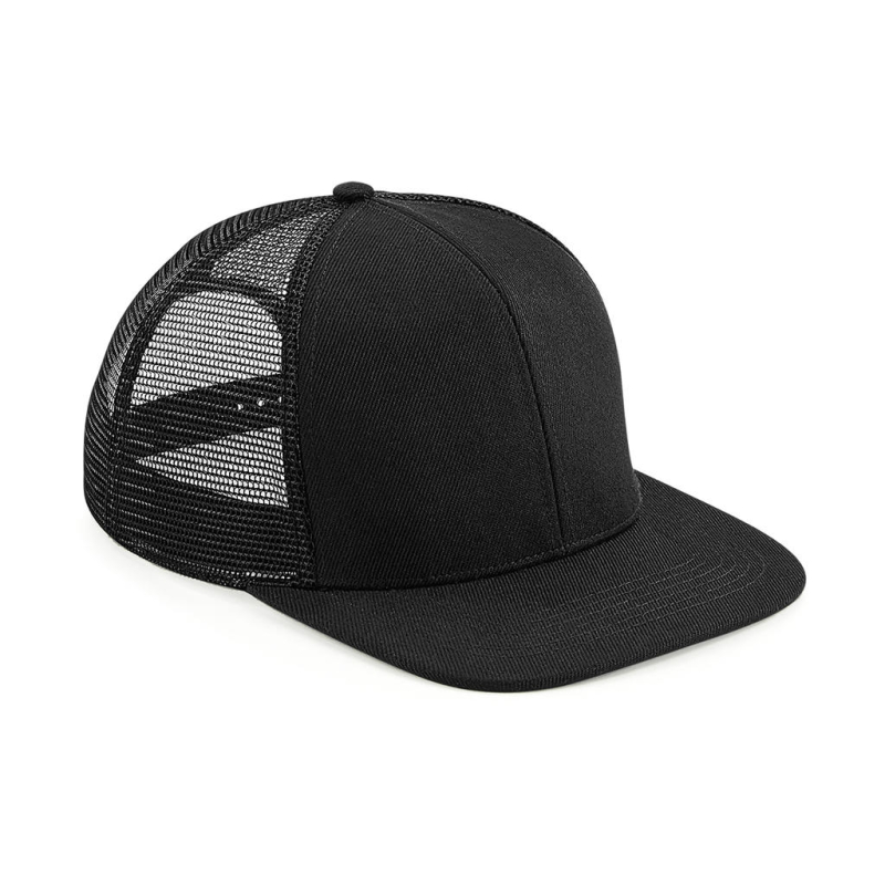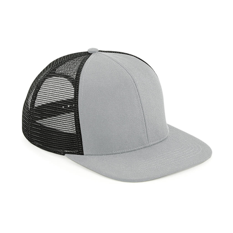 Original Flat Peak 6 Panel Trucker aus der Marke Beechfield, Referenz B664. Kappe mit Netzrücken und flachem Oberteil