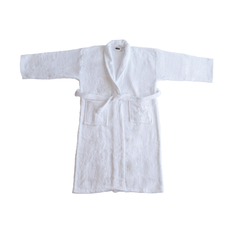 Dieser 100 % Baumwolle gekämmte Unisex-Bademantel mit seinem Schalkragen ist ein ausgezeichneter Kompromiss für ein Hotel oder Spa dank Details wie verzierte Taschen, elegante Handgelenke und seine Aufhängung.