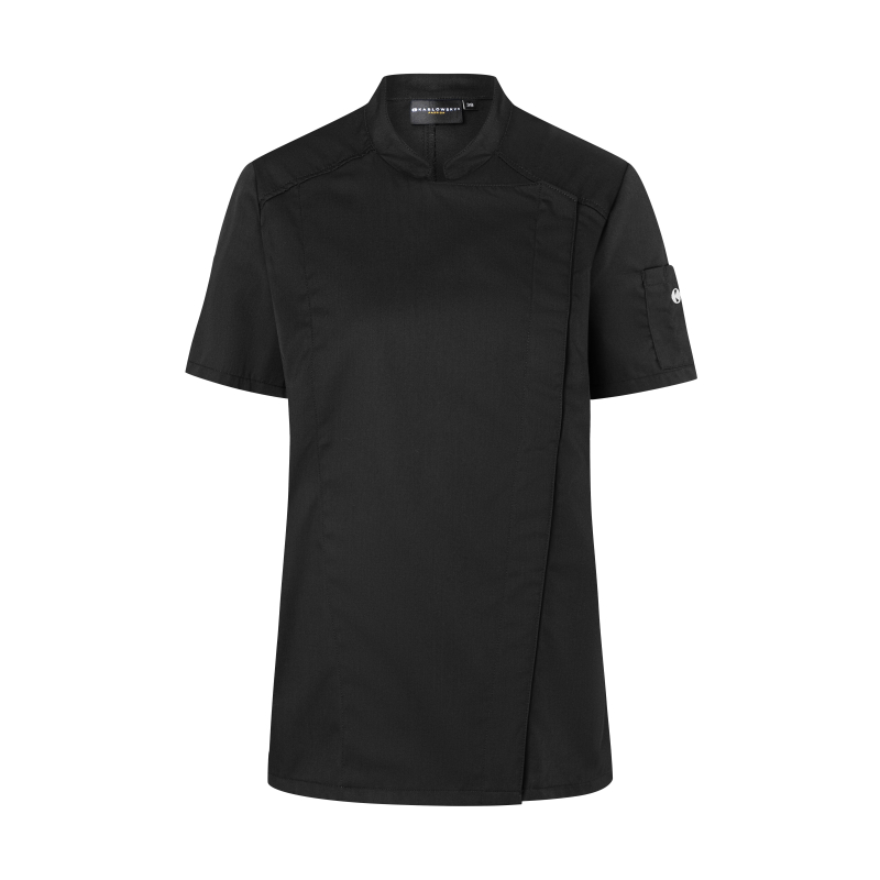 Ein resolut moderner Look für diese Damenkochjacke. Diese kurze Ärmel-Version ist ideal für den Sommer. Perfekt geeignet, um bequem in warmen Umgebungen zu arbeiten.