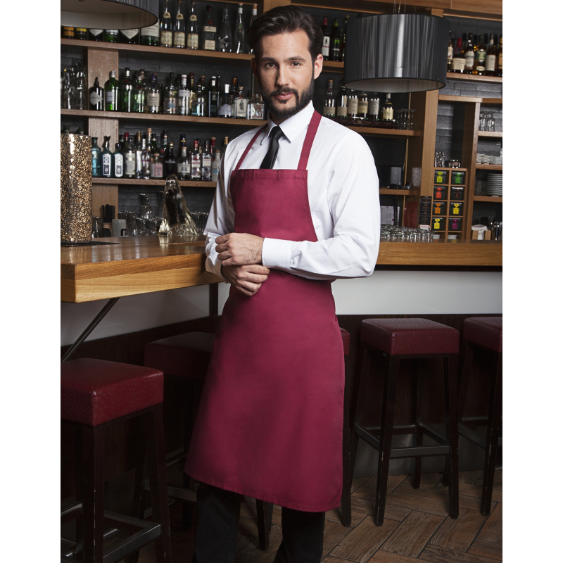 Diese mittellange Schürze steigt auf das Knie und bietet einen ausgezeichneten Schutz für Restaurant-Celler-Service oder Lebensmittelhandel