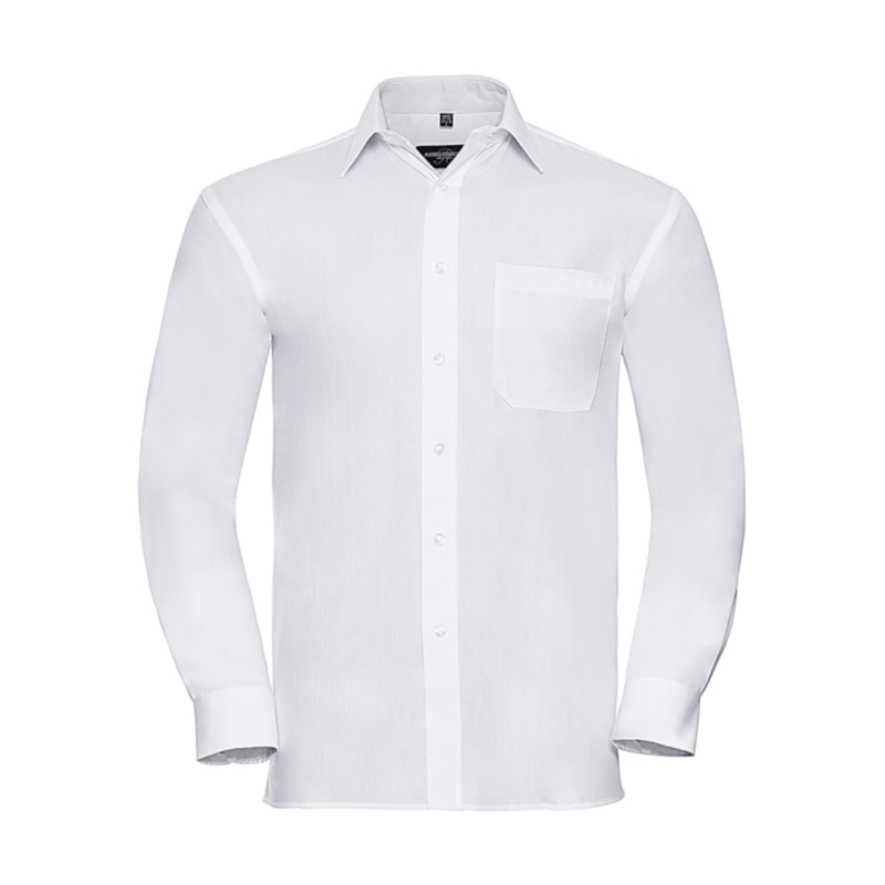 Lange Ärmel Hemd in Popeline Russell R-936M-0. Klassisches Popline-Shirt für Männer, lange Ärmel und mit EasyCare-Label (leichte Wartung).