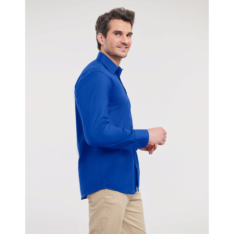 Langarmshirt in Oxford Russell R-922M-0. Klassisches Hemd aus Oxford für Herren fit, mit Easycare-Label für einfache Wartung.