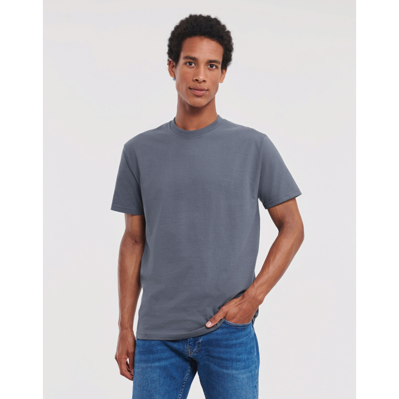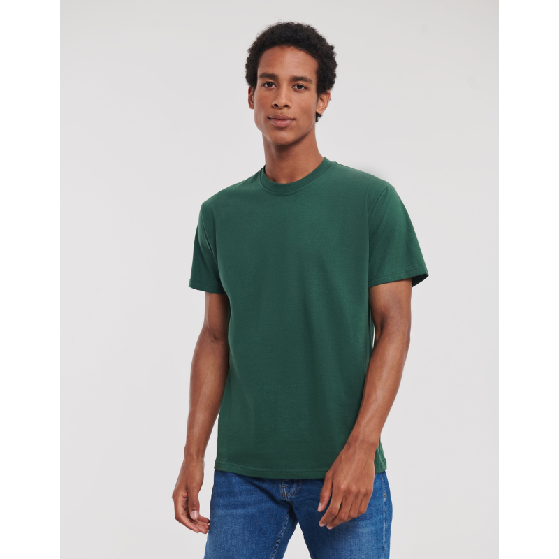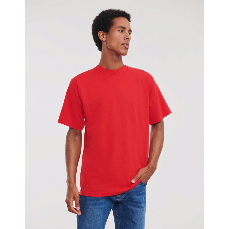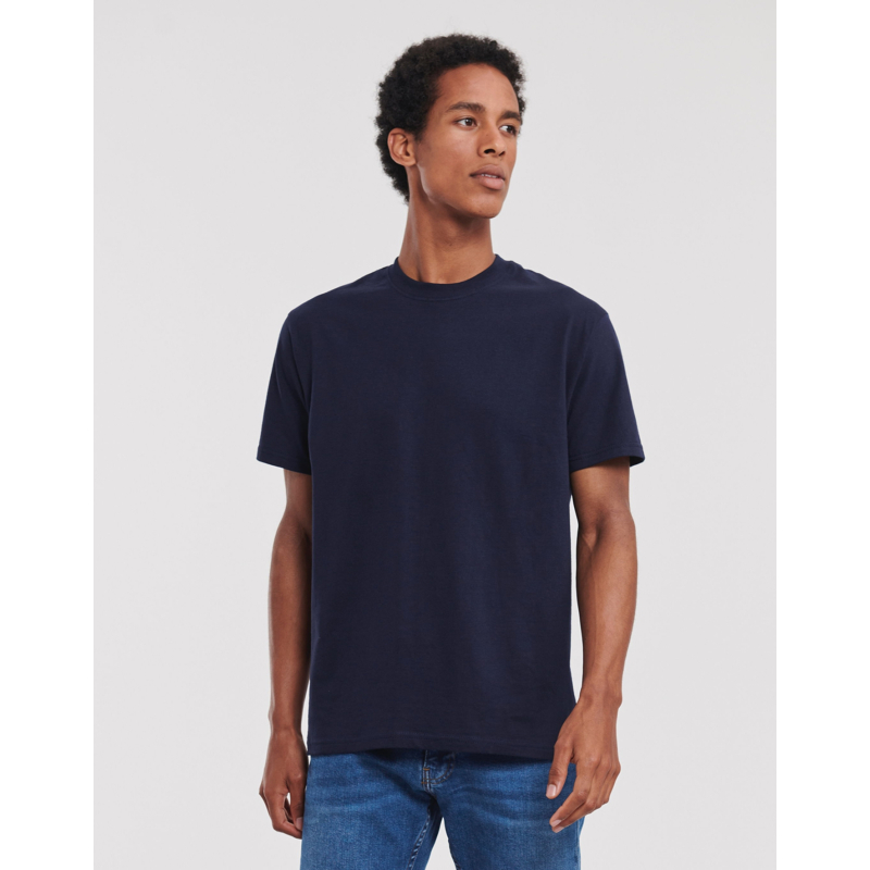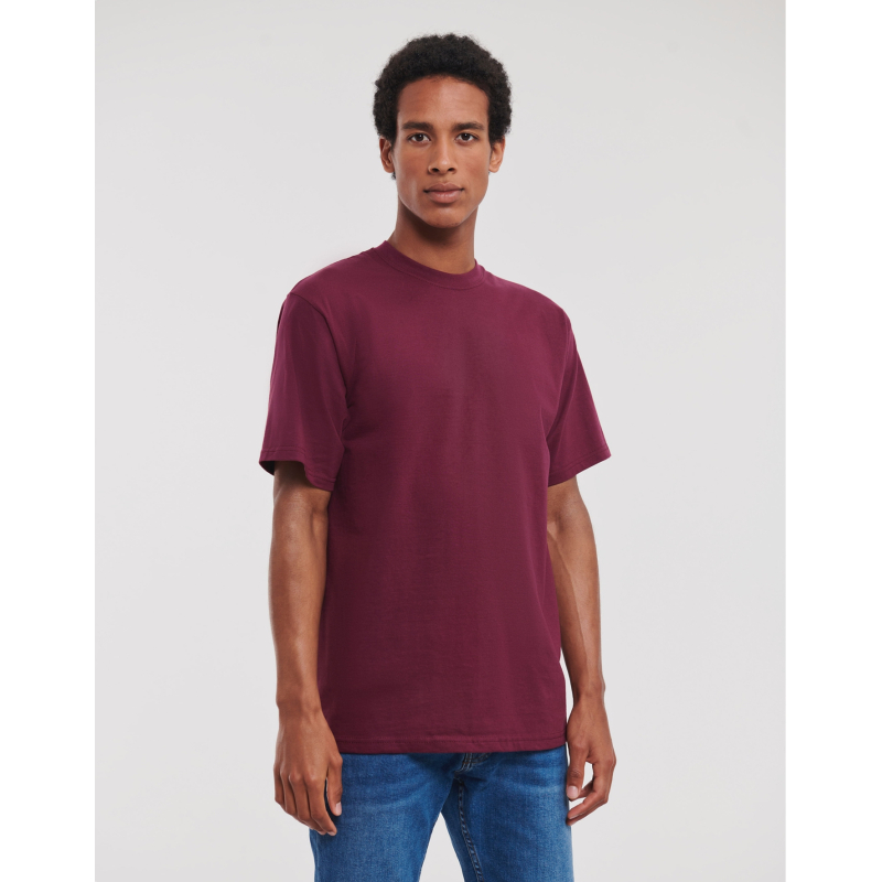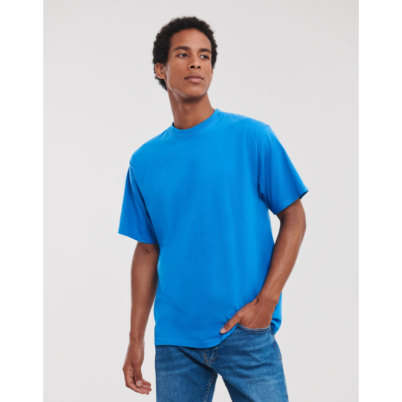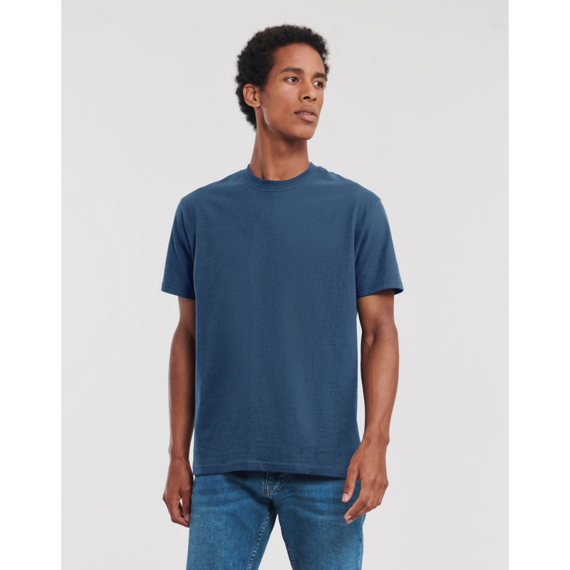 t-shirt Russell 180M ist ein vielseitiges, komfortables und langlebiges Kleidungsstück, das sich durch seine außergewöhnliche Qualität auszeichnet. Mit seinem klassischen Schnitt, einer breiten Palette von Farben und Engagement für Öko-Responsibility und Ethik verkörpert sie das Know-how und die Werte der Marke Russell.