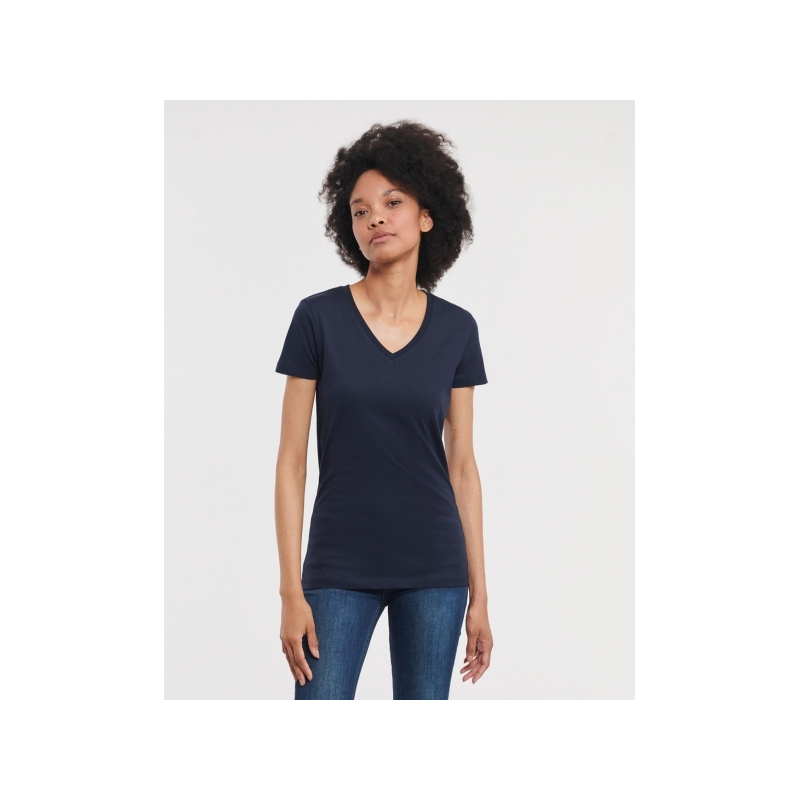 Ladies` Pure Organic (Bio) (Bio) V-Neck Teemarke Russell Europa, Referenz 0R103F0. T-Shirt für Frauen mit V-Ausschnitt in 100% Bio-Baumwolle.