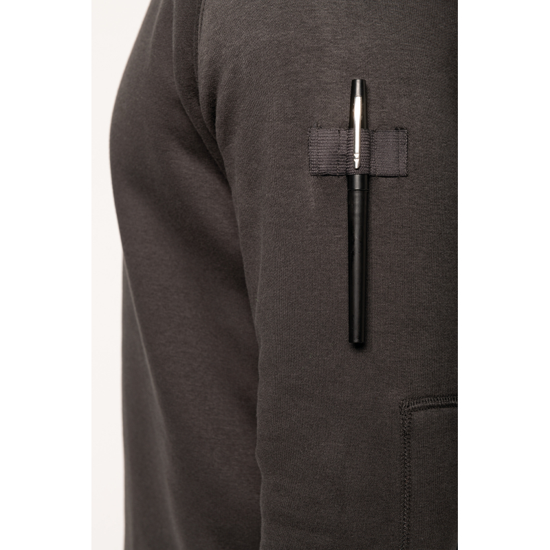 Sweatshirt Ärmel hoch. Sweatshirt ohne Rippenkanten an der Unterseite des Rumpfes und Rücken verlängert. Widerstand und Waschstabilität. Verstärkte Naht an den Schultern, um mögliche Tränen zu vermeiden.