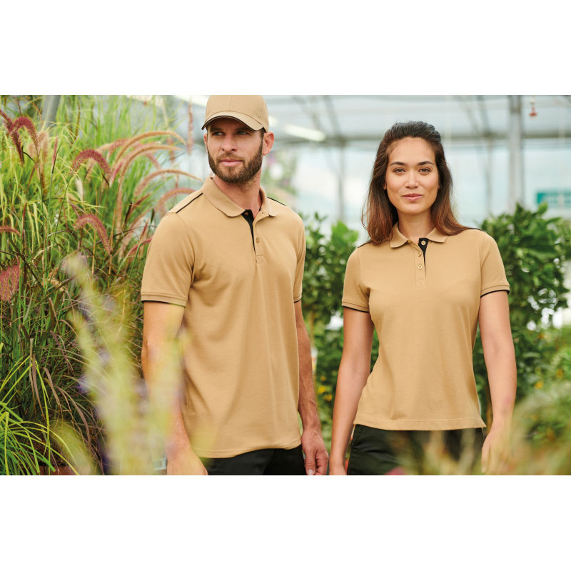 Polo Day Zum Tag kontrastierende kurze Ärmel Mann. Waschbar bei 60° C und Anti-Bulk-Behandlung. Kontrastierter Hals, Schultern, Knöpfbein.