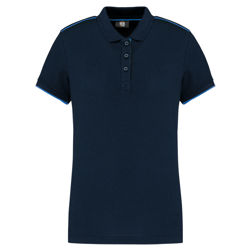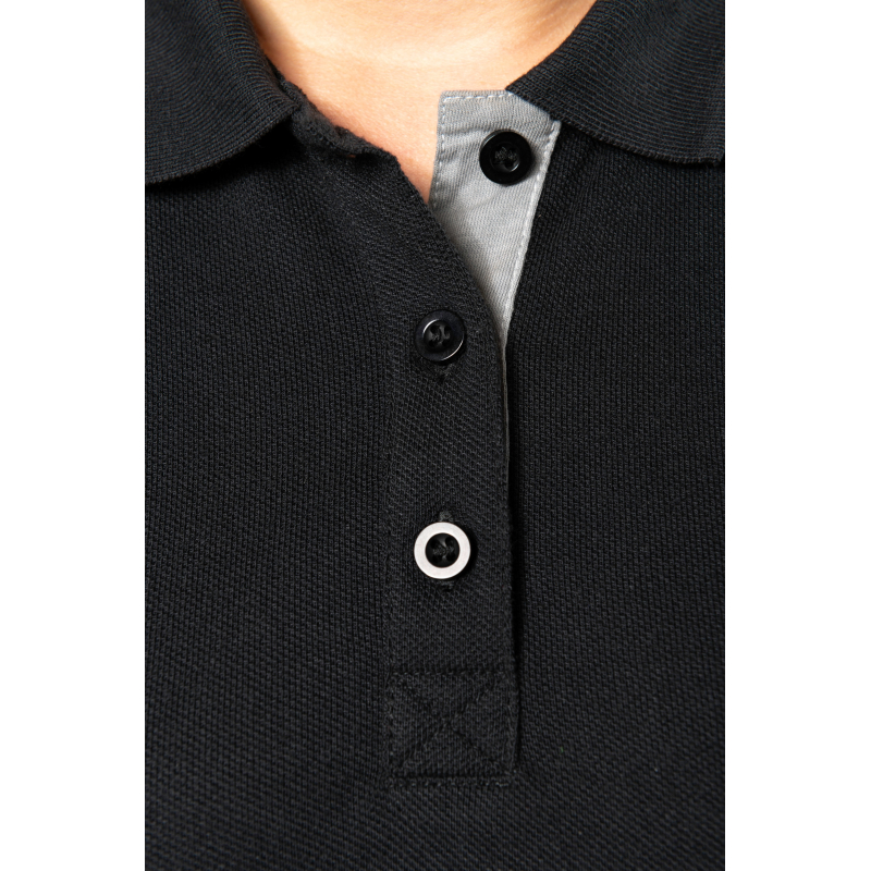 Polo Day Zum Tag kontrastierende kurze Ärmel Frau. Waschbar bei 60° C und Anti-Bulk-Behandlung. Kontrastierter Hals, Schultern, Knöpfbein.