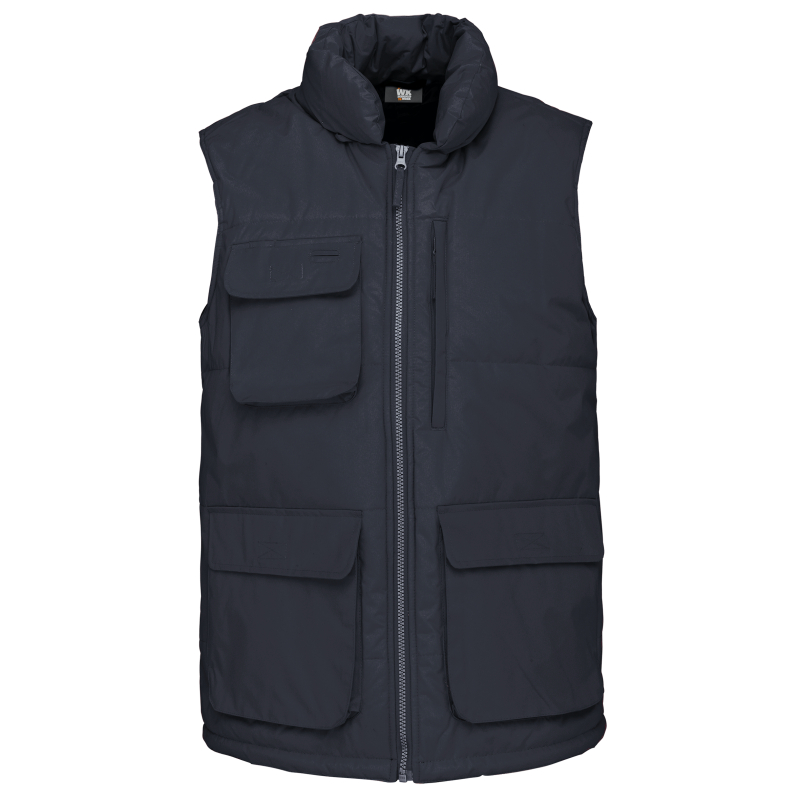 Bodywarmer gesteppter Mann. Einfache Wartung, ideal für den täglichen professionellen Einsatz. PVC-Beschichtung für bessere wasserdichte Gewebe. Resistent und flexibel dank Mikrofaser-Polyester.