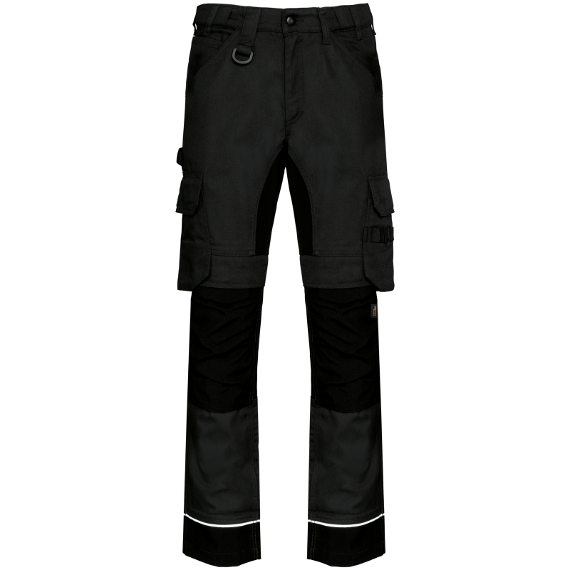 Mann recycelte Leistung Arbeitshose. Einfache Wartung und mit vielen Taschen ausgestattet, ist dies der wesentliche Teil der Arbeiter. Arbeitskleidungsstück, das Teil eines umweltverantwortlichen Ansatzes ist. Verstärkte Nähte an Spannstellen.