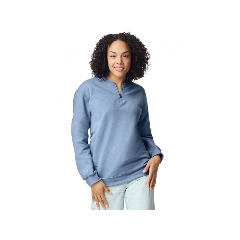 Das Sweatshirt Softstyle 1/4 Zip Gildan SF008 ist entworfen, um Stil und Komfort zu kombinieren. Hergestellt aus Softstyle gekämmter Baumwolle, bietet es eine hervorragende Weichheit und eine moderne Passform. Der 1/4 Zip ermöglicht eine bessere Belüftung, ideal für den täglichen oder professionellen Einsatz. Leicht aber warm, ist es für Freizeit, Teams und Veranstaltungen geeignet. Anpassbar durch Druck oder Stickerei, ist es perfekt für Unternehmen und Verbände.