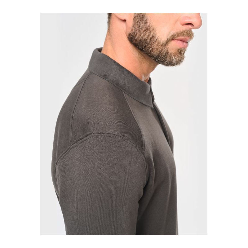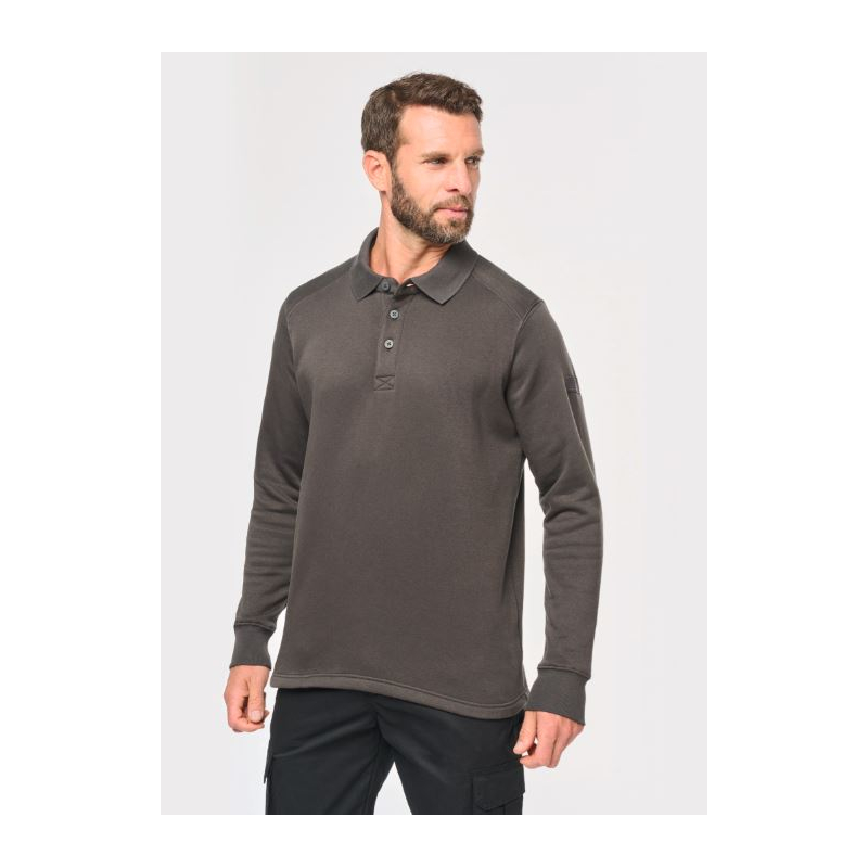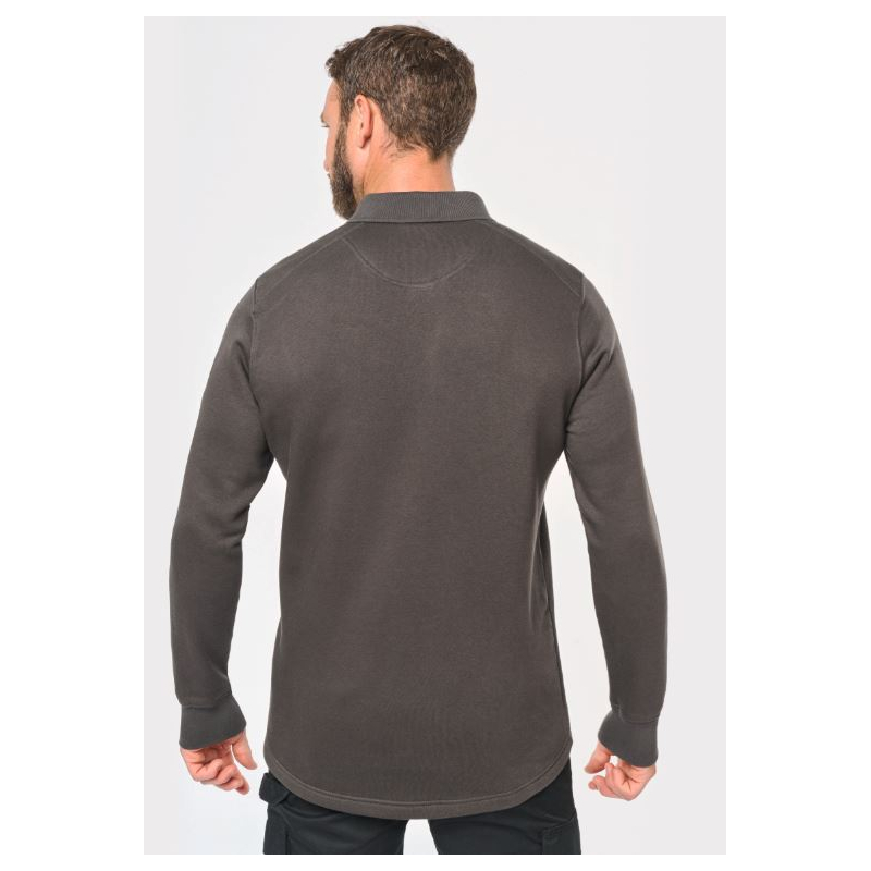Polo Kragen Sweatshirt mit High-End-Finish, waschbar bei 60°C. Seine kunststoffbeschichteten Metallknöpfe sind ideal für die Lebensmittel- und Automobilindustrie.