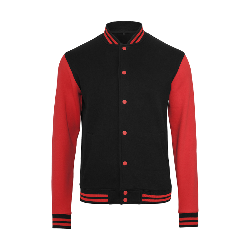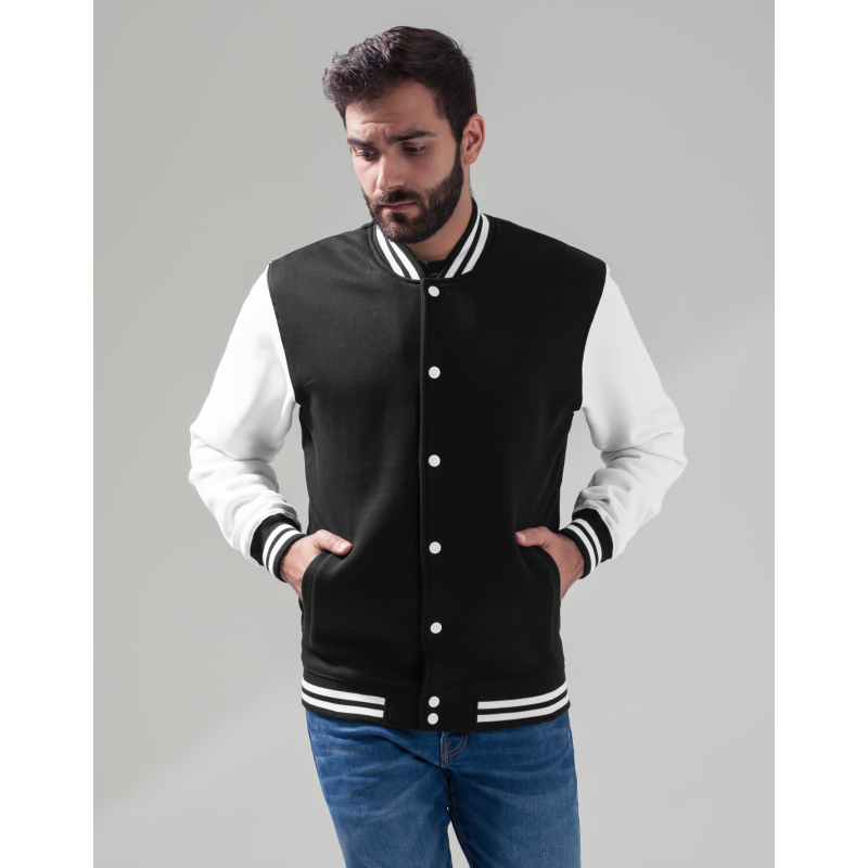 Die College BY015 Jacke Build Your Brand kombiniert vintage-stil und modernen komfort. Hergestellt aus weich gemischter Baumwolle, bietet es kontrastierende Ärmel, gestreifte Rippenkanten und einen Schnappverschluss für einen trendigen Uni-Look. Ohne ein Markenlabel ist es perfekt für die Personalisierung durch Sticken oder Drucken. Ideal für Teams, Schulen, Sportclubs oder Veranstaltungen. Ein lässiges Stück mit starkem Identitätspotenzial.