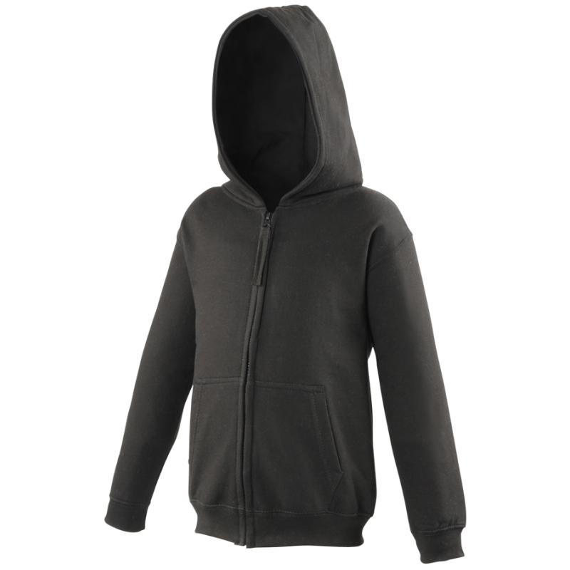 Hoodie sweatshirt with zip on the front. Dual-thick hood and kangaroo pocket, no hooded clamp for safety..