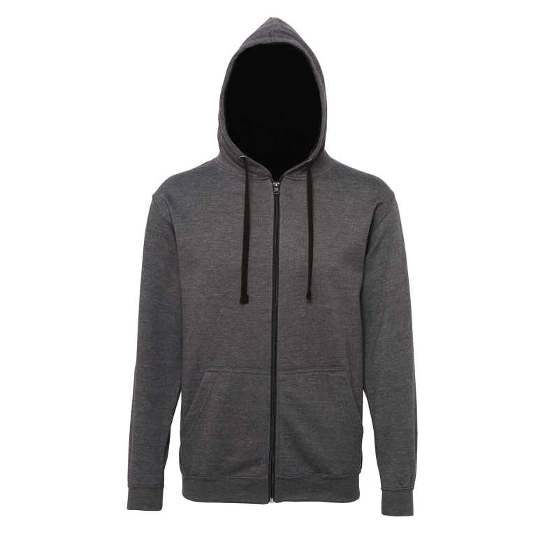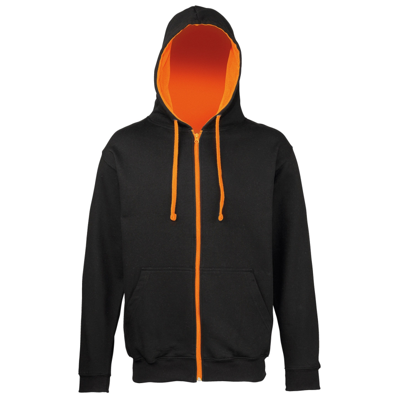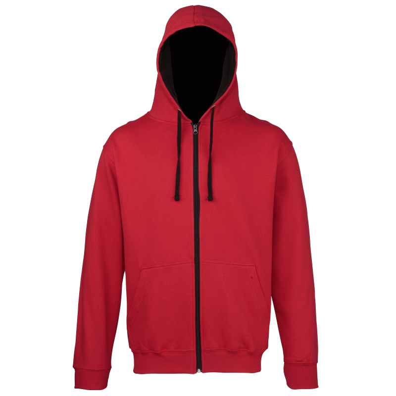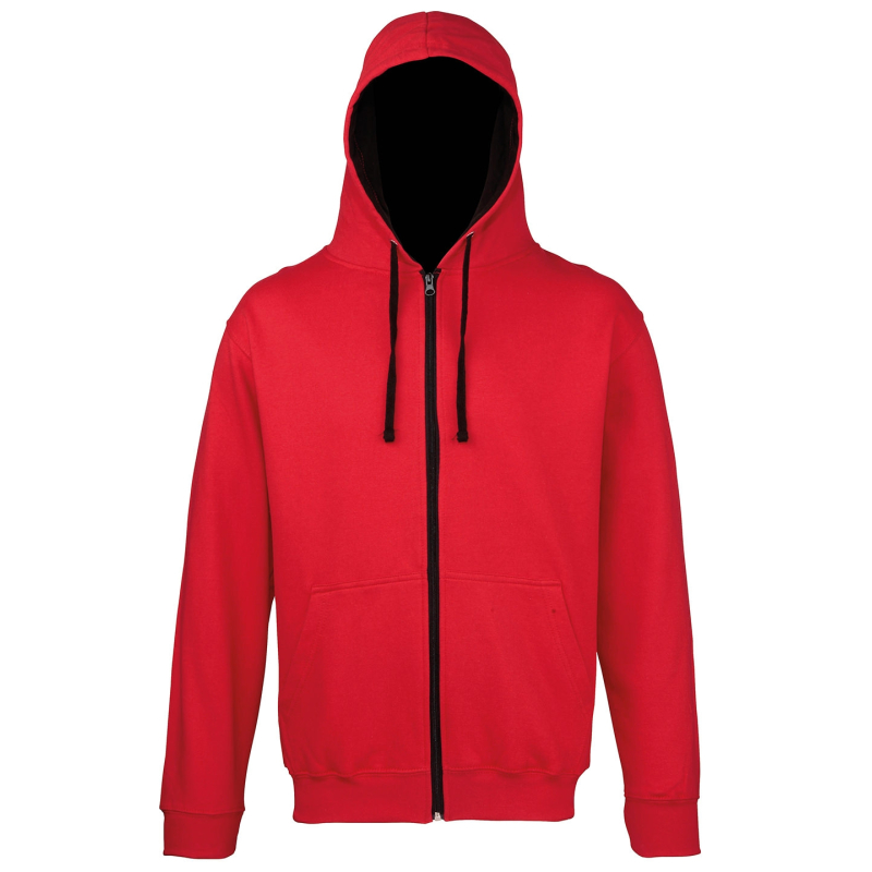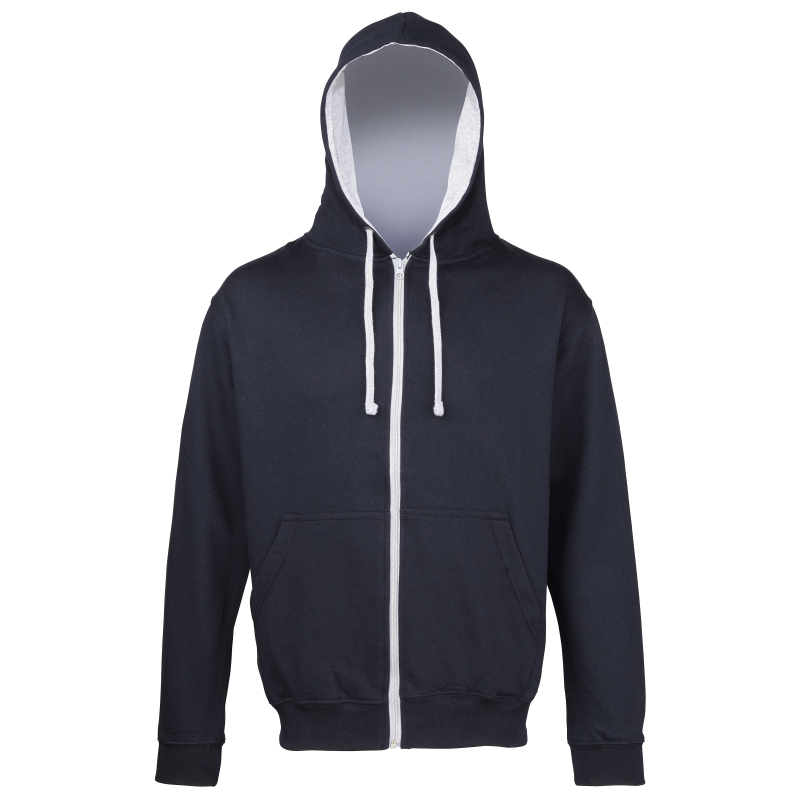 Zipped sweatshirt Varsity AWDis JH053. Double-thick fabric hood sweater with contrasting lining and contrasting plastic integral zip