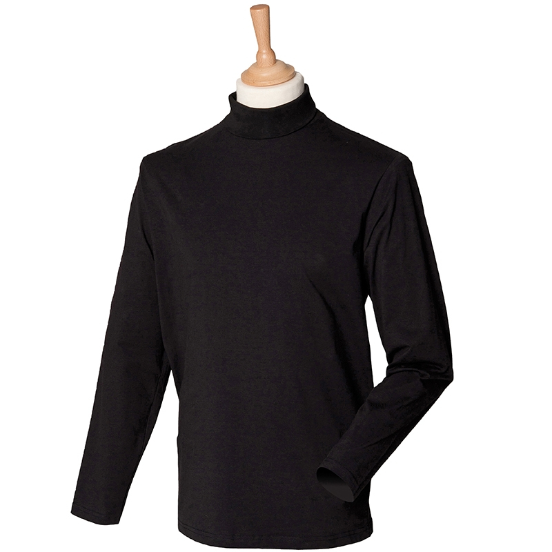Stretch long sleeve turtleneck sweater in stretch jersey for a comfortable double-thick fit.