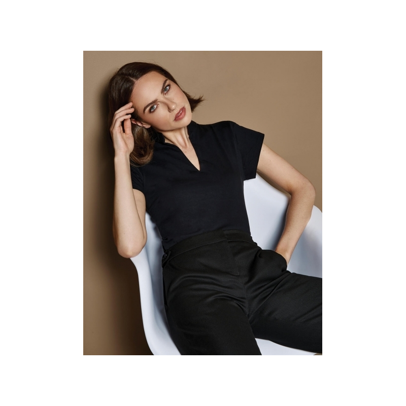 Regular Fit Mandarin Collar Top Kustom Kit KK770. Elegant high in jersey with elastane with a V-neck and a right Mao collar.