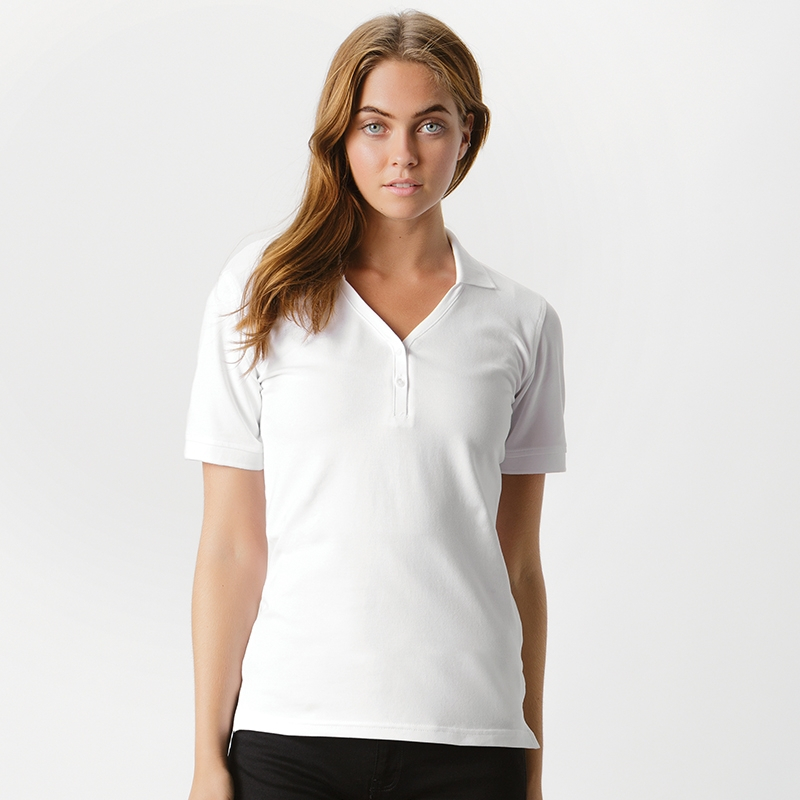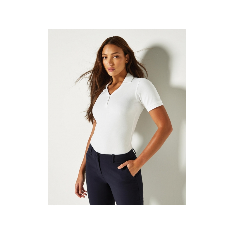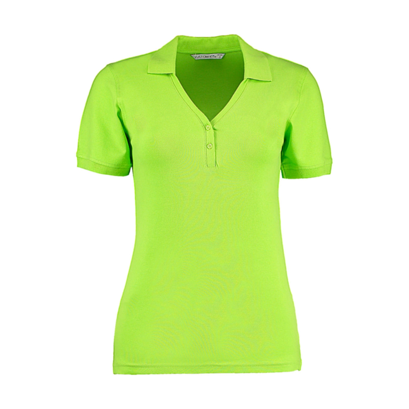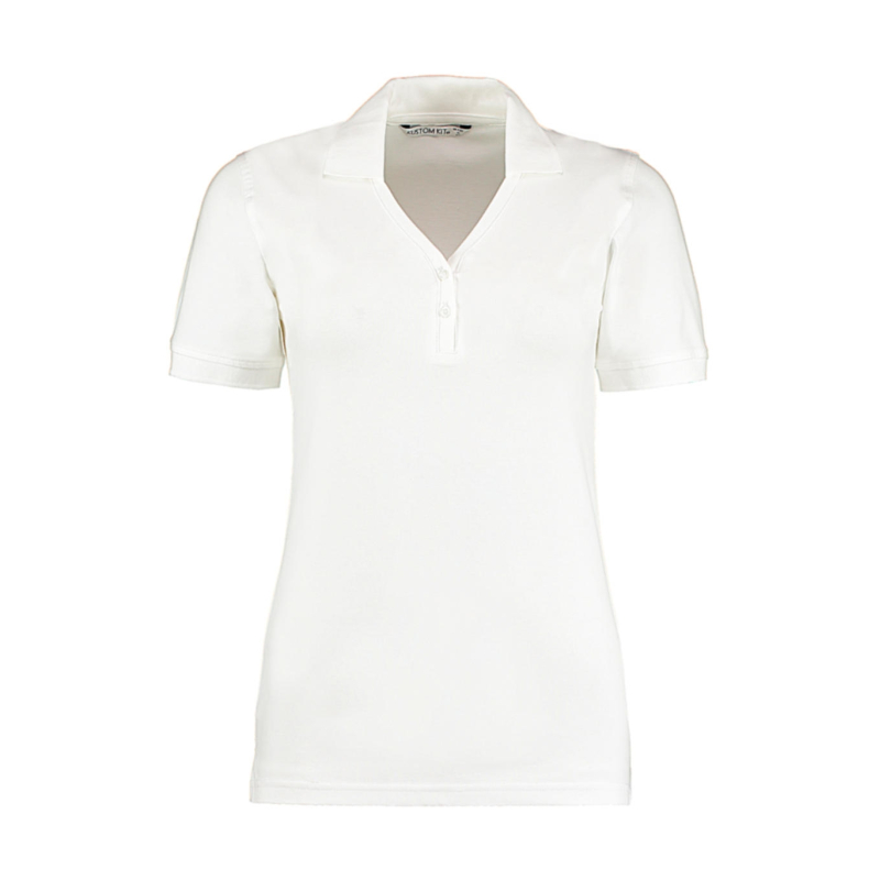 Women`s Regular Fit Comfortec® V Neck Polo Kustom Kit KK732. Atypical polo with low buttoning and V opening to the rib collar.