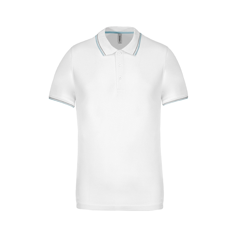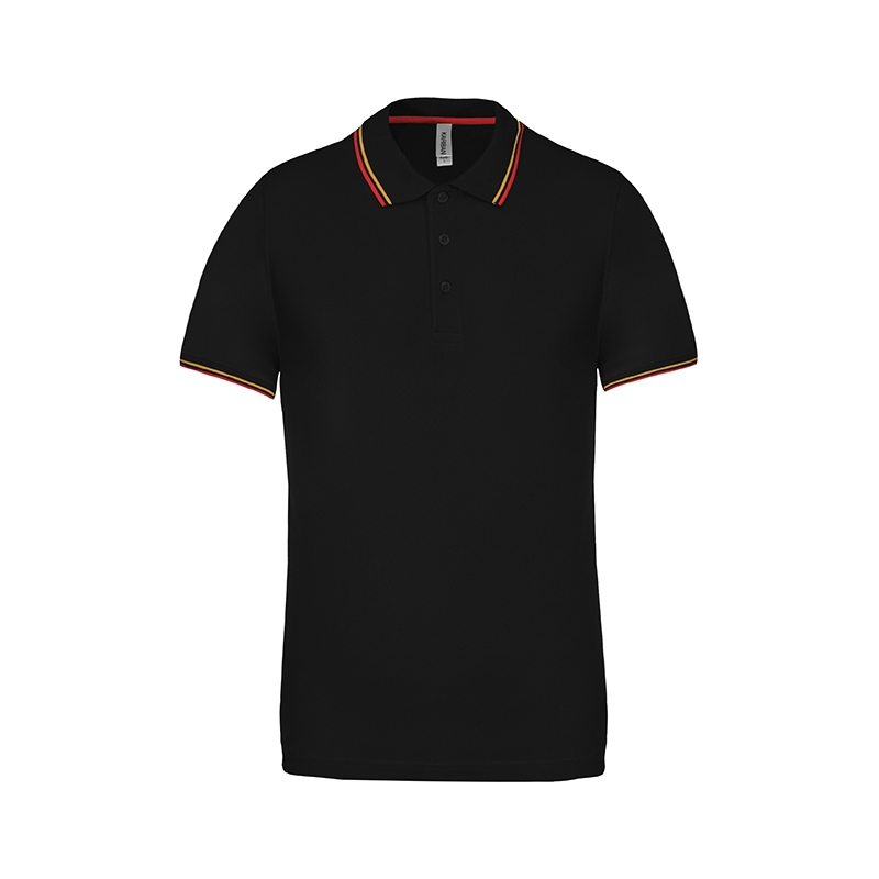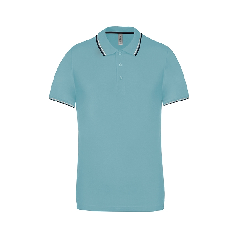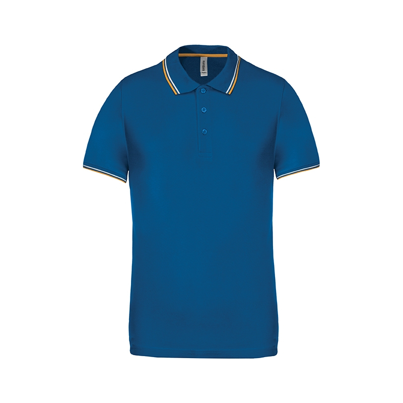 Composition: 100% cotton pique. Button pad 3 buttons. Contrasting cleanliness band neckline and side slots. Side edge finishings with contrasting neck and sleeves. Double low needle garment.