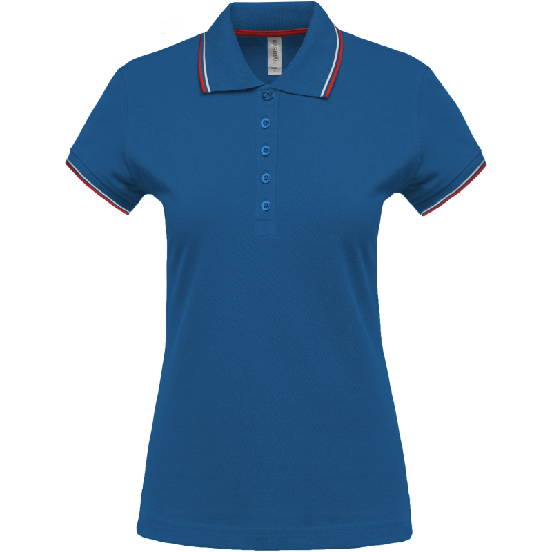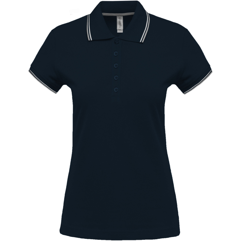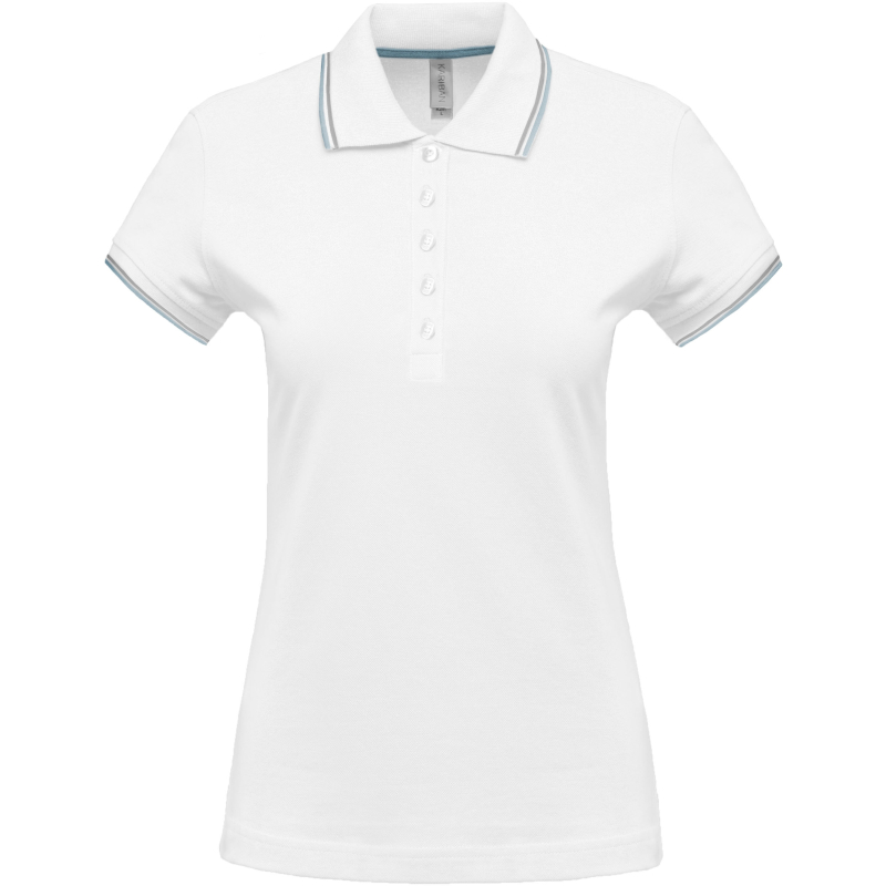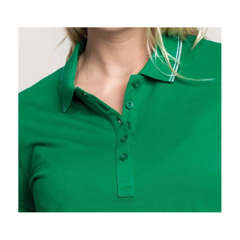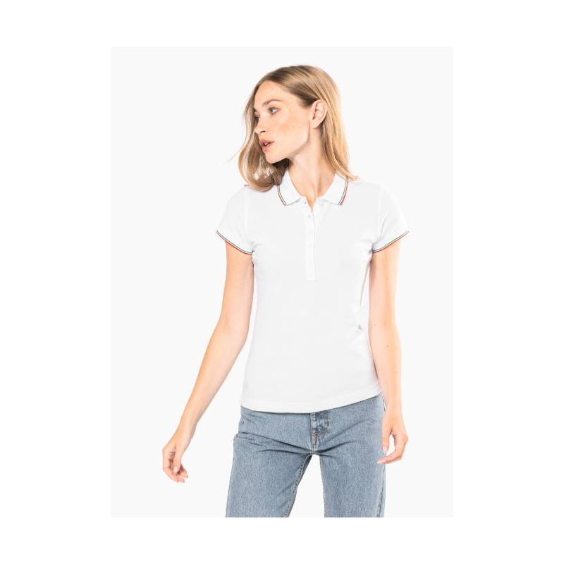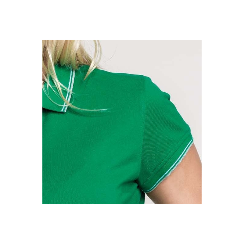 Very chic polo with a double border and in 2 colours at the neck and end of the sleeves, also exists in model for men under the reference K250