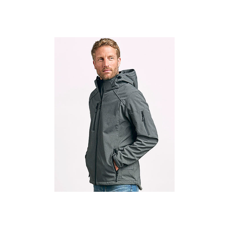Softshell jacket with hood, with high technical characteristics and sealing. Polar lining.