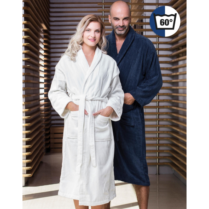 Weight: 360 g/m² |100% cotton |velvet exterior |cotton terry interior |shawl collar |tie |3/4 sleeves |belt |two patch pockets |washable up to 60°C