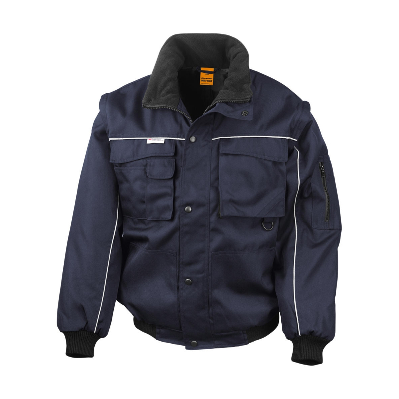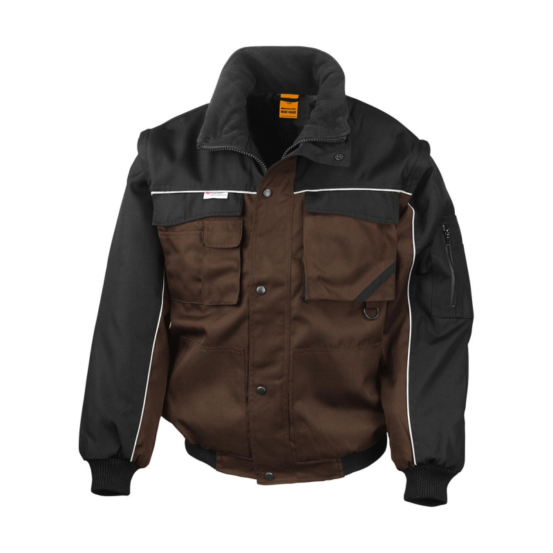 Ext: 100% polyester Taslon Oxford 600 D with PU-coated coatings, cover: 160 g/m2, 100% polyester thermoprotec, lining: 100% polyester 190T, repellent, wind resistant and water repellent, flap-protected zipper and push-buttons, removable sleeves, rib edges at wrists and bottom of torso, multiple out and int pockets, cable eyelets, identity card holder, reflective collar on body and sleeves, chest and back access for customization