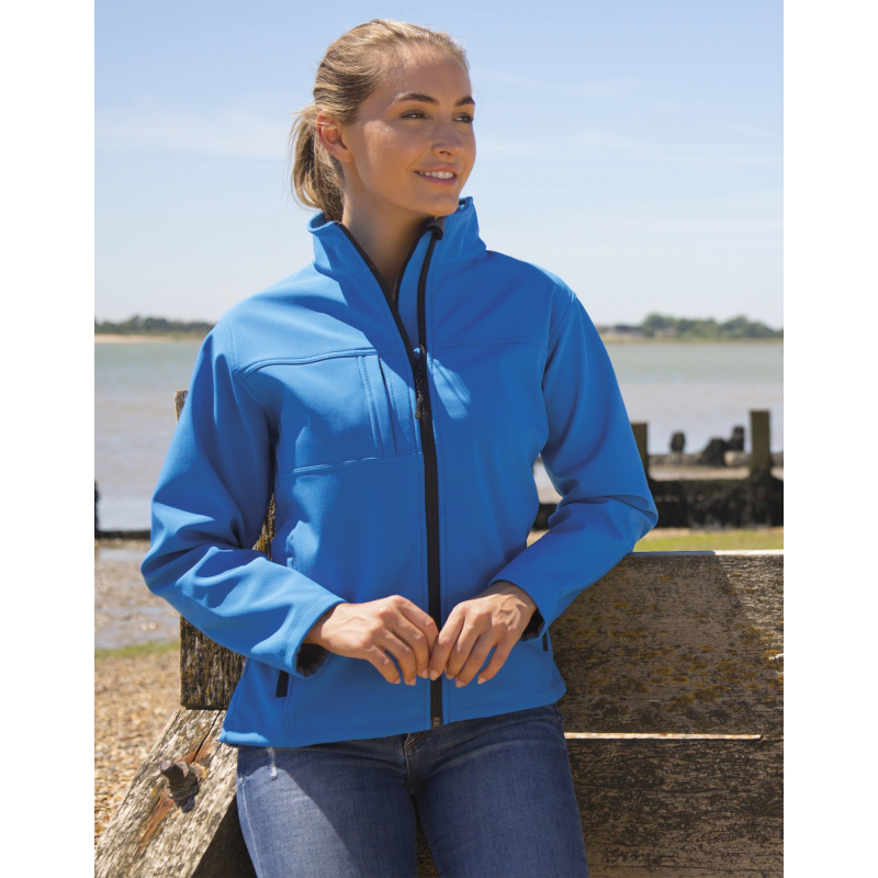 Softshell jacket for women in 320 g/m2 rather heavy for various uses requiring element protection and heating power.