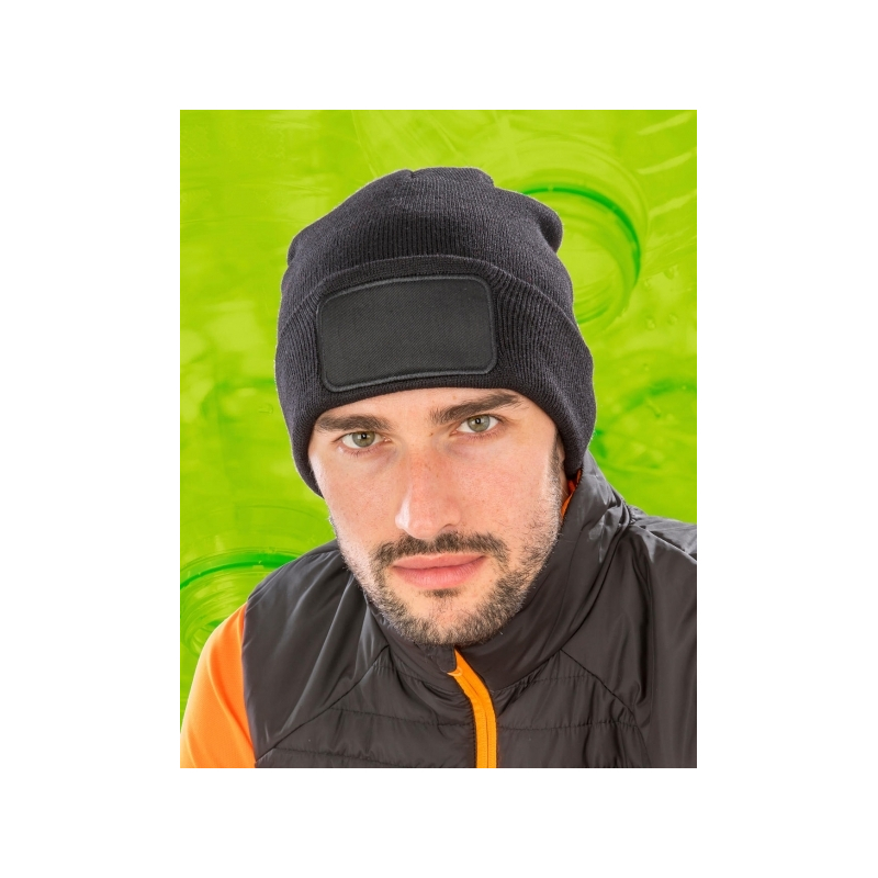 Recycled Double Knit Printers Beanie brand Result, Reference RC927X. Recycled polyester and polyacrylic blend cap 50/50