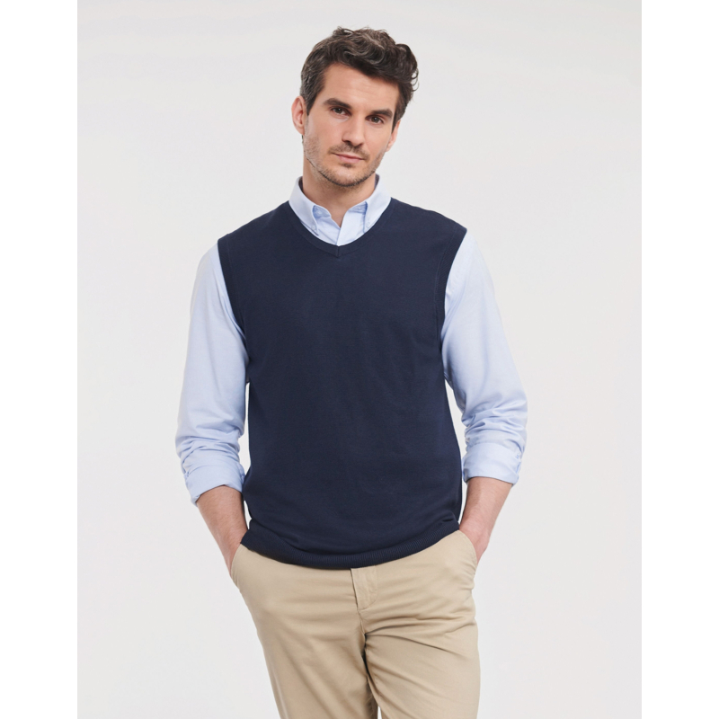 Sleeveless Pullover Russell R-716M-0. Very classic sleeveless sweater for wearing in corporate uniforms or in event accessory.