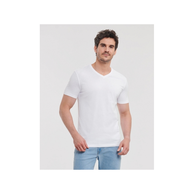 Men`s Pure Organic (Bio) (Bio) V-Neck Tee brand Russell Europe, reference 0R103M0. V-neck T-shirt in 100% organic cotton.