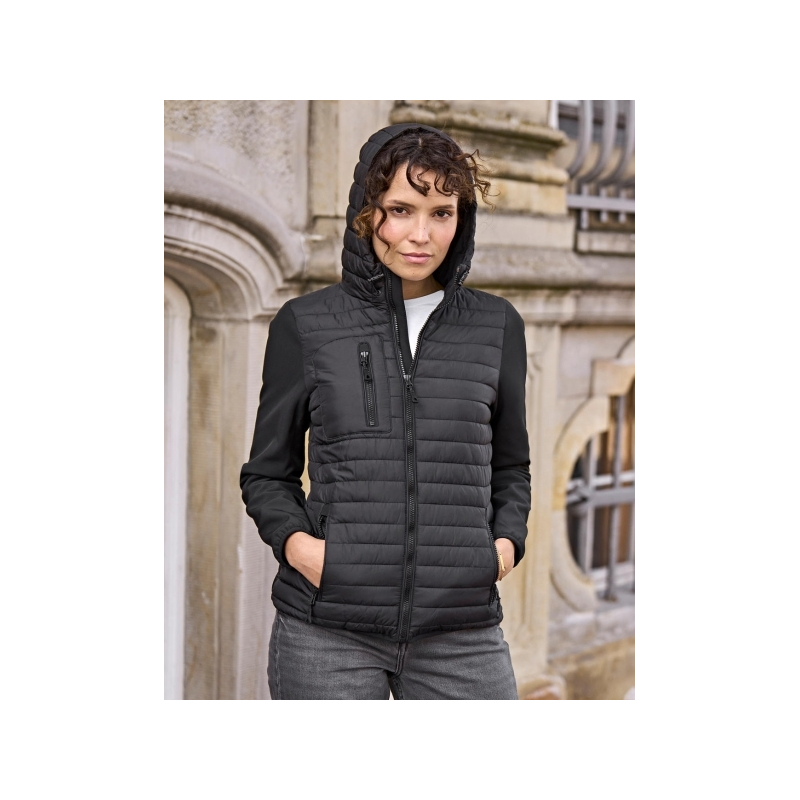 Ladies` Hooded Crossover Jacket of the brand Tee Jays, reference 9629. women's quilted sleeveless jacket with 3 pockets