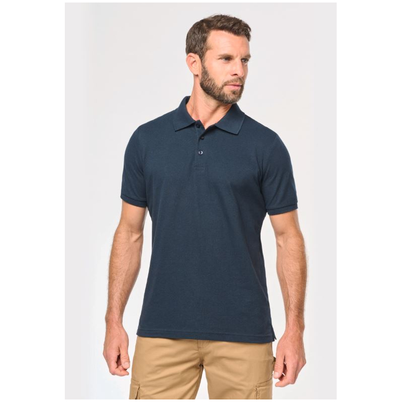 Eco-responsible Polo man. Straight cut for ease. Reinforced seam at the shoulders, for better resistance. Soft and pleasant organic cotton for the skin.
