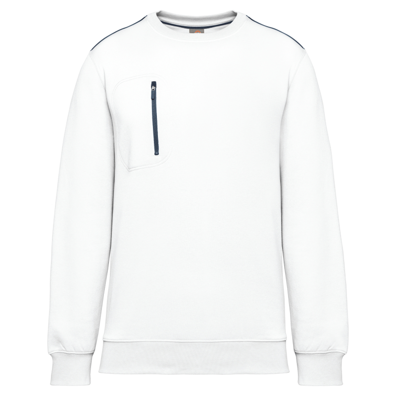 Sweatshirt Day To Day zip pocket contrasted unisex. Washing at 60°C: daily protection and hygiene. Molleton scratched for more softness and comfort. 3-wire LSF manufacture: strength and stability in washing.