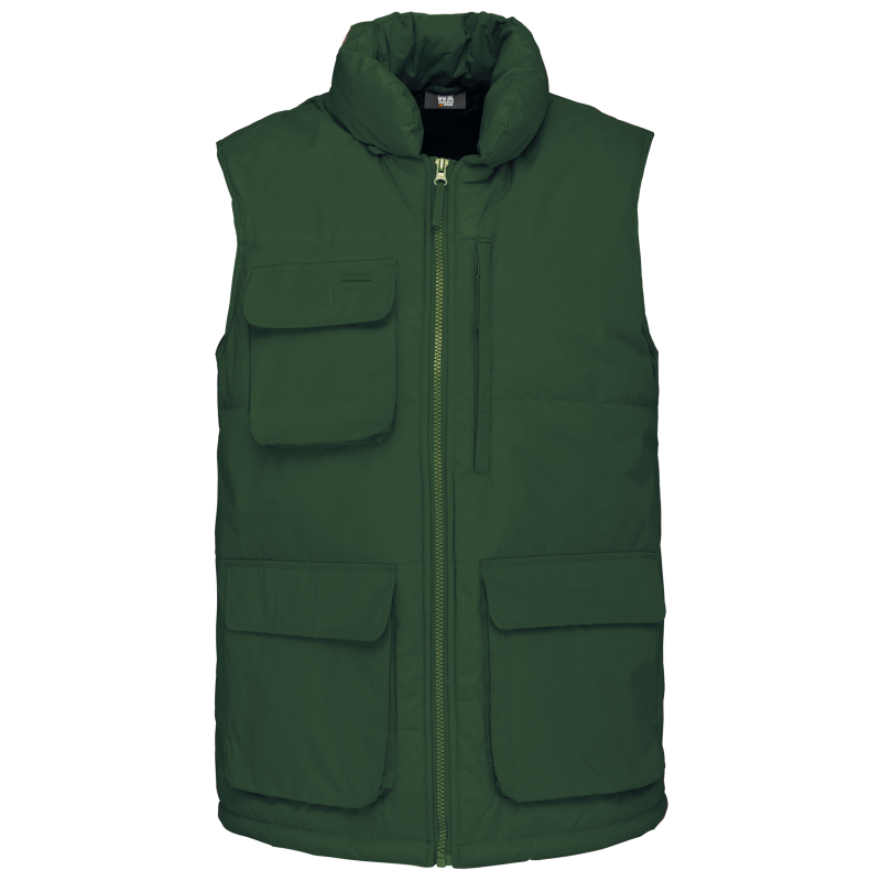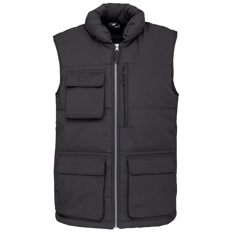 Bodywarmer quilted man. Easy maintenance, ideal for daily professional use. PVC coating for better waterproof fabric. Resistant and flexible thanks to microfibre polyester.