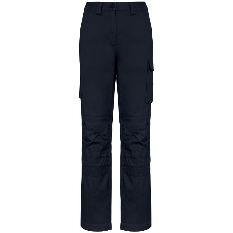 Women's multi-pouch work pants. Resistant and easy to maintain thanks to polycotton. Zero metal: ideal for industrial employees and electricians. Twilled fabric combining comfort and durability.
