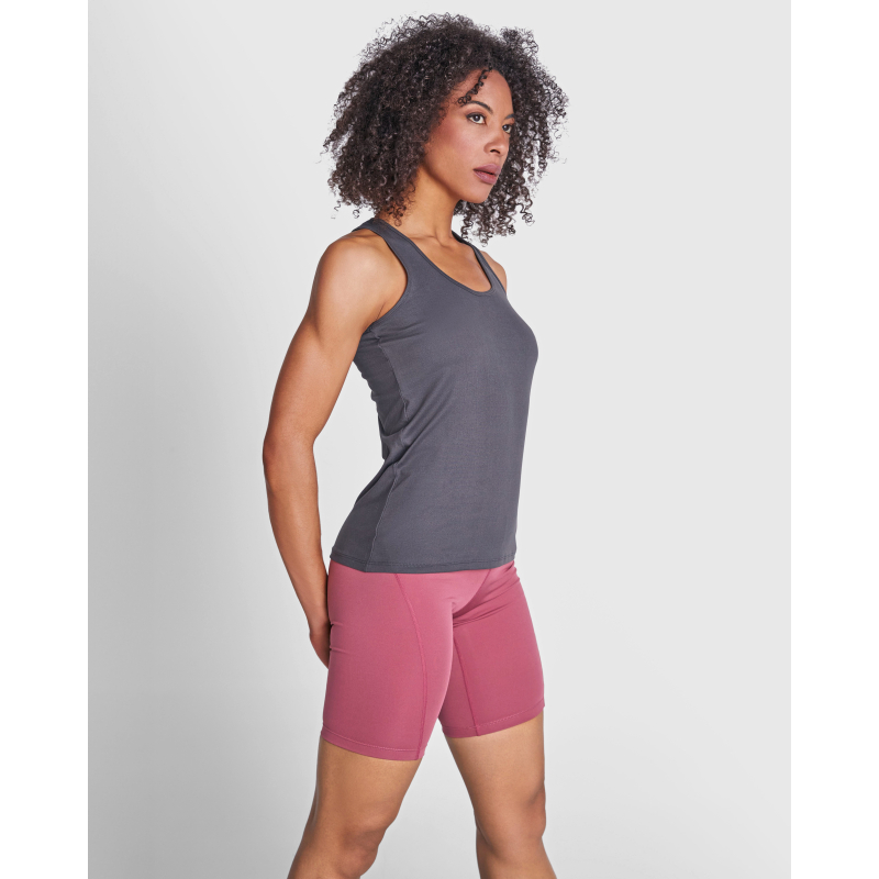 The Aida tank top from Roly is perfect for sports activities: fitness, racing, yoga or gym training. Its breathable and lightweight material guarantees optimal comfort even during intense efforts. Its feminine cut ensures freedom of movement and style. It is ideal for sports clubs, events or an active outfit on a daily basis.